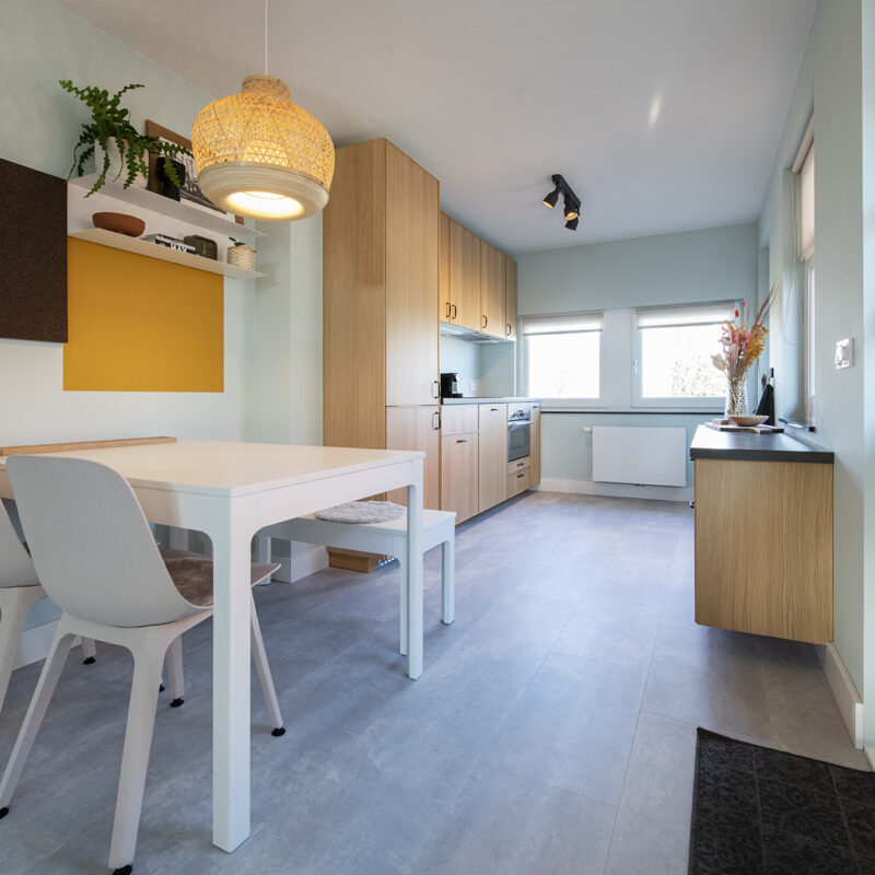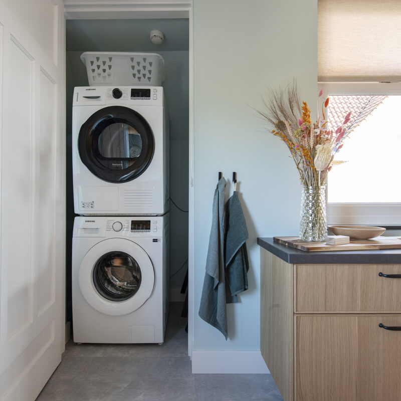 Het appartement op de eerste verdieping beschikt verder ook nog over een wasmachine en een droger en heeft een eigen dakterras.